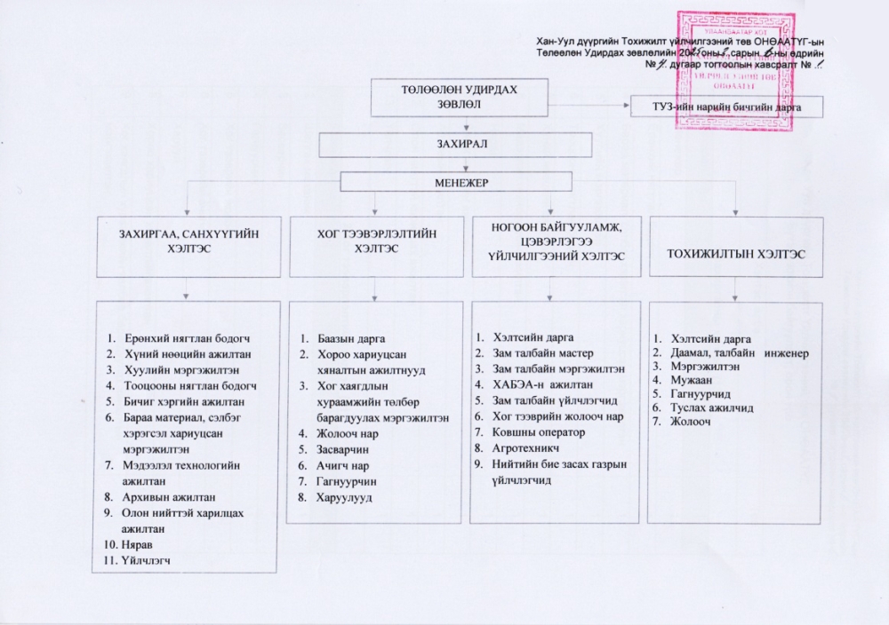 "Тохижилт үйлчилгээний төв" ОНӨААТҮГ-ын бүтэц, зохион байгуулалтын схем. 2025 оны 09 дүгээр сарын байдлаар...