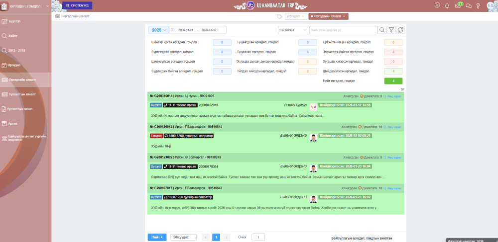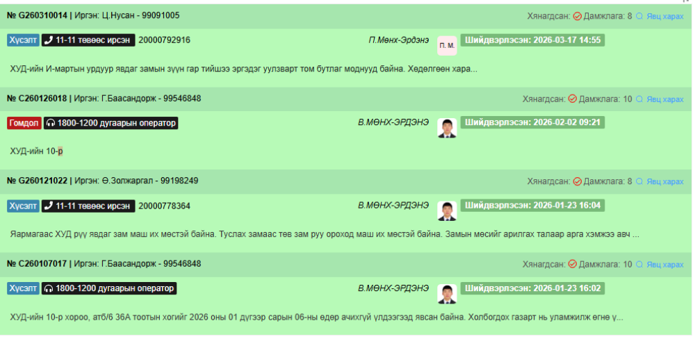2026 оны эхний улирлын байдлаар өргөдөл, гомдол шийдвэрлэсэн байдлын мэдээлэл
